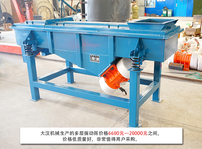 隨著生產(chǎn)節(jié)奏的加快,單層直線振動(dòng)篩已經(jīng)完全無法滿足生產(chǎn)需求,多層直線振動(dòng)篩就是由直線振動(dòng)篩改造升級的一款高效篩分設(shè)備。多層直線振動(dòng)篩可以將物料分級為多種規(guī)格,實(shí)現(xiàn)一次投料出多種規(guī)格物料,可以有效節(jié)省時(shí)間成本。由于不同廠家生產(chǎn)的多層直線振動(dòng)篩型號、生產(chǎn)工藝等不同,所以就導(dǎo)致市場上多層直線振動(dòng)篩價(jià)格不一,那么一臺多層直線振動(dòng)篩一般都多少錢呢?大漢小編將為您解答:
