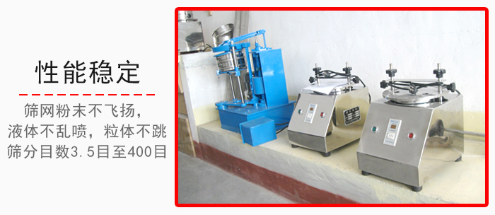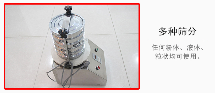 實驗室振動篩采用新型專用動力發生器,產生多元高頻振動,高效篩濾樣品;標準篩體,確保樣品分 析高精度;電子延時器,可根據需要設定同種物料同等篩分時間、保證樣品的分析數據統一性,把檢驗誤差降到低程度,以便對產品質量做出準確判斷。