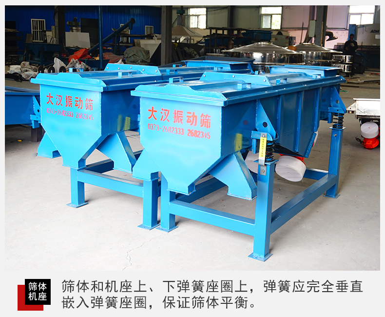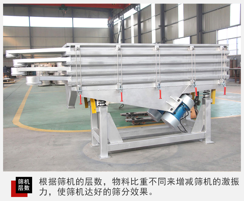 2,直線(xiàn)篩振動(dòng)篩篩分面積廣,該設(shè)備從粉狀篩分到顆粒狀物料篩分都能完成同時(shí)還能夠篩分多種物料等級(jí)。