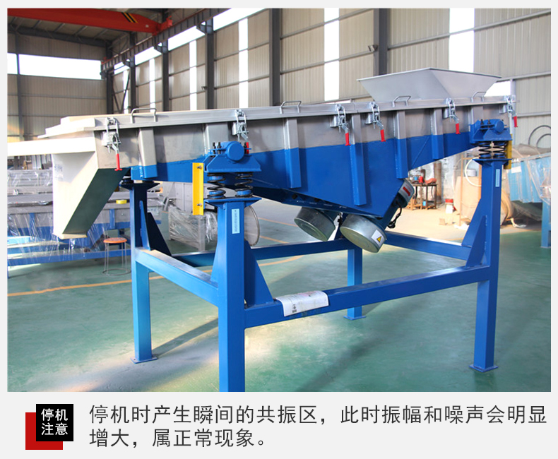 6、設(shè)備在停機(jī)時(shí)產(chǎn)生瞬間的共振區(qū),此時(shí)振幅和噪聲會(huì)明顯增大,屬正常現(xiàn)象,設(shè)備在開(kāi)停機(jī)前,篩面上不得有存留物料,篩網(wǎng)需經(jīng)常檢查是否張緊、破損,如有破損要即時(shí)更換。