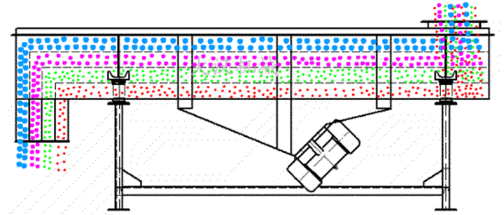 粉煤灰振動利用振動電機激振作為振動的振動來源,使物料在篩網拋起,同時向前作直線運動,物料從給料均勻地進入振動篩機的進料口,通過多層篩網網孔大小的不同控制物料顆粒的大小,從而保證不同的物料在不同層級中被排出篩箱外。