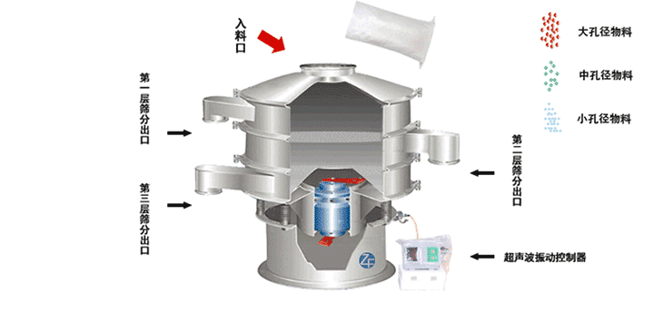 超聲波振蕩篩采用超聲波換能器清網(wǎng)裝置,改變了單一頻率,解決強(qiáng)吸附性,易團(tuán)聚,高靜電,高精細(xì),高密度,輕比重等篩分難題。